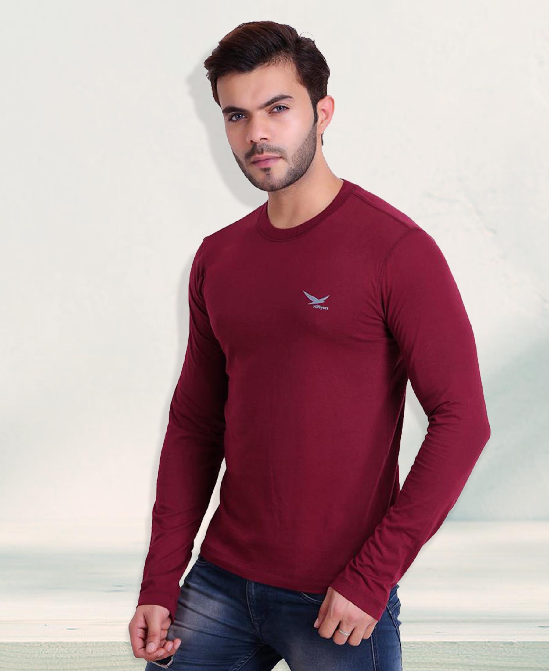 HiFlyers Men Round Neck Full Sleeve Solid Maroon T-Shirt