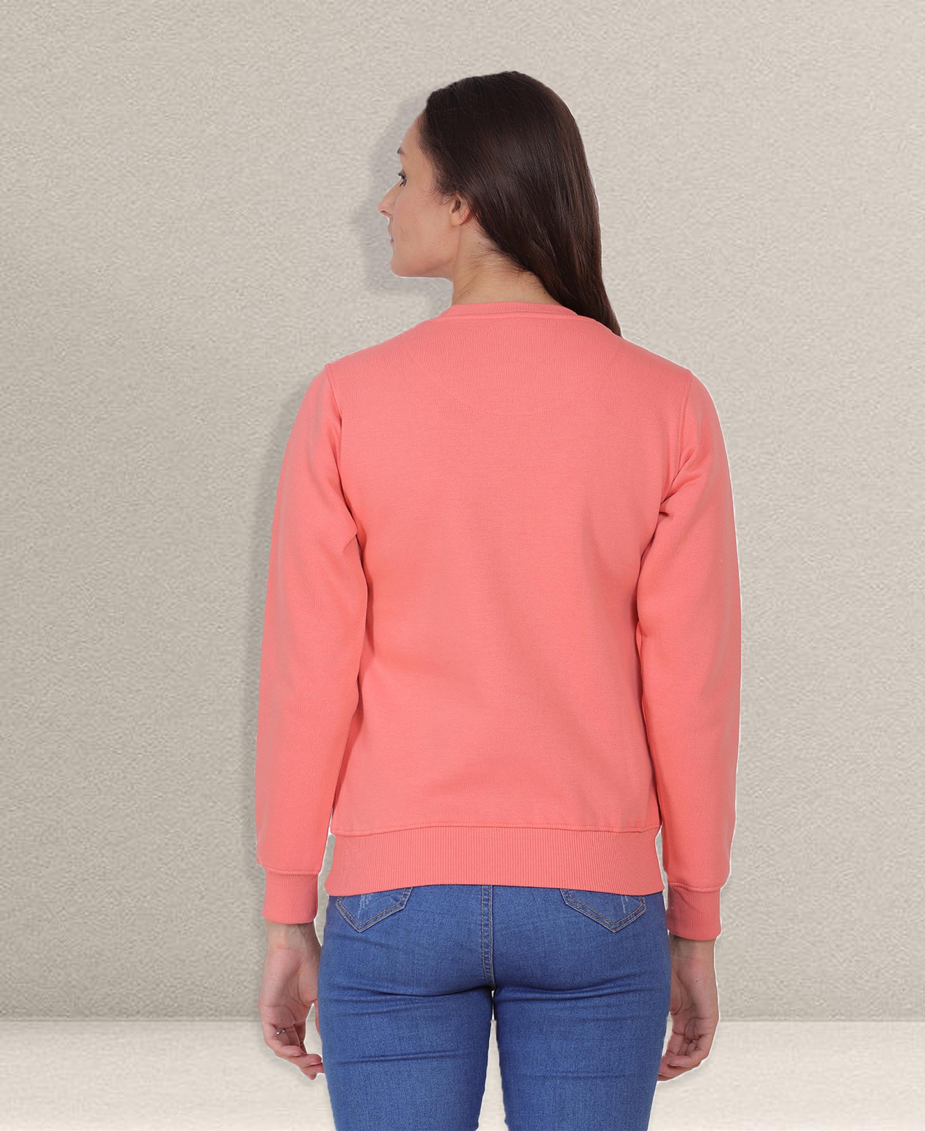 HiFlyers Women Coral Regular Fit Printed Round Neck Sweatshirt