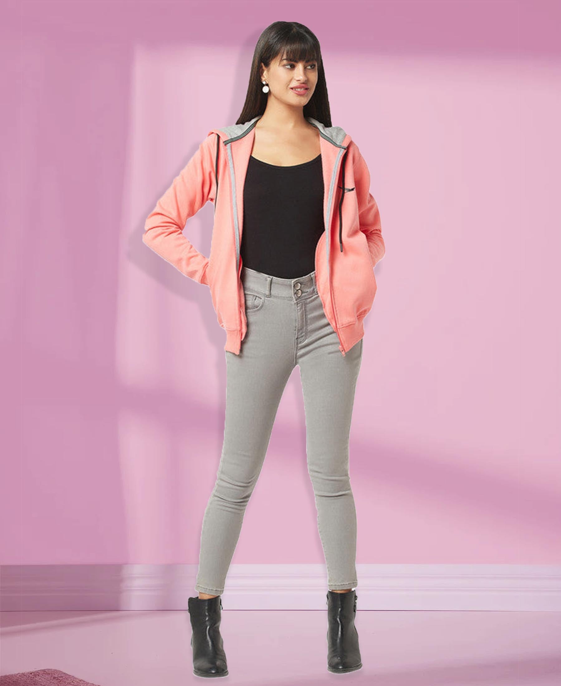 HiFlyers Women Coral Cotton Fleece Solid Sweatshirt With Hood