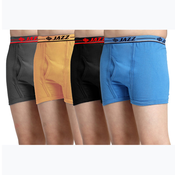 T.T. Boys |Regular Fit|Breathable & Soft Innerwear|Front Open Kids Trunks| Pure Cotton |Jazz Fine Long Top Elastic Trunks|Boys Trunks Pack Of 4-Mix Color