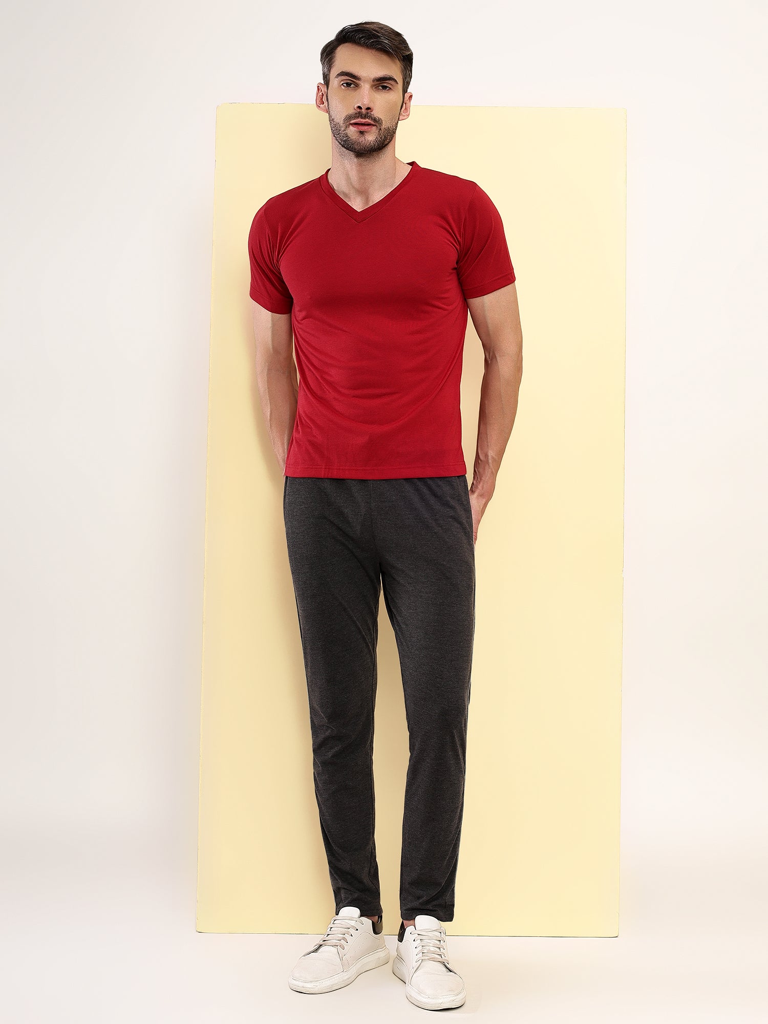T.T. Men Slim Fit Poly Jersey V-Neck Half Sleeve T-Shirt Pack Of 3 Anthra-Brown-Maroon