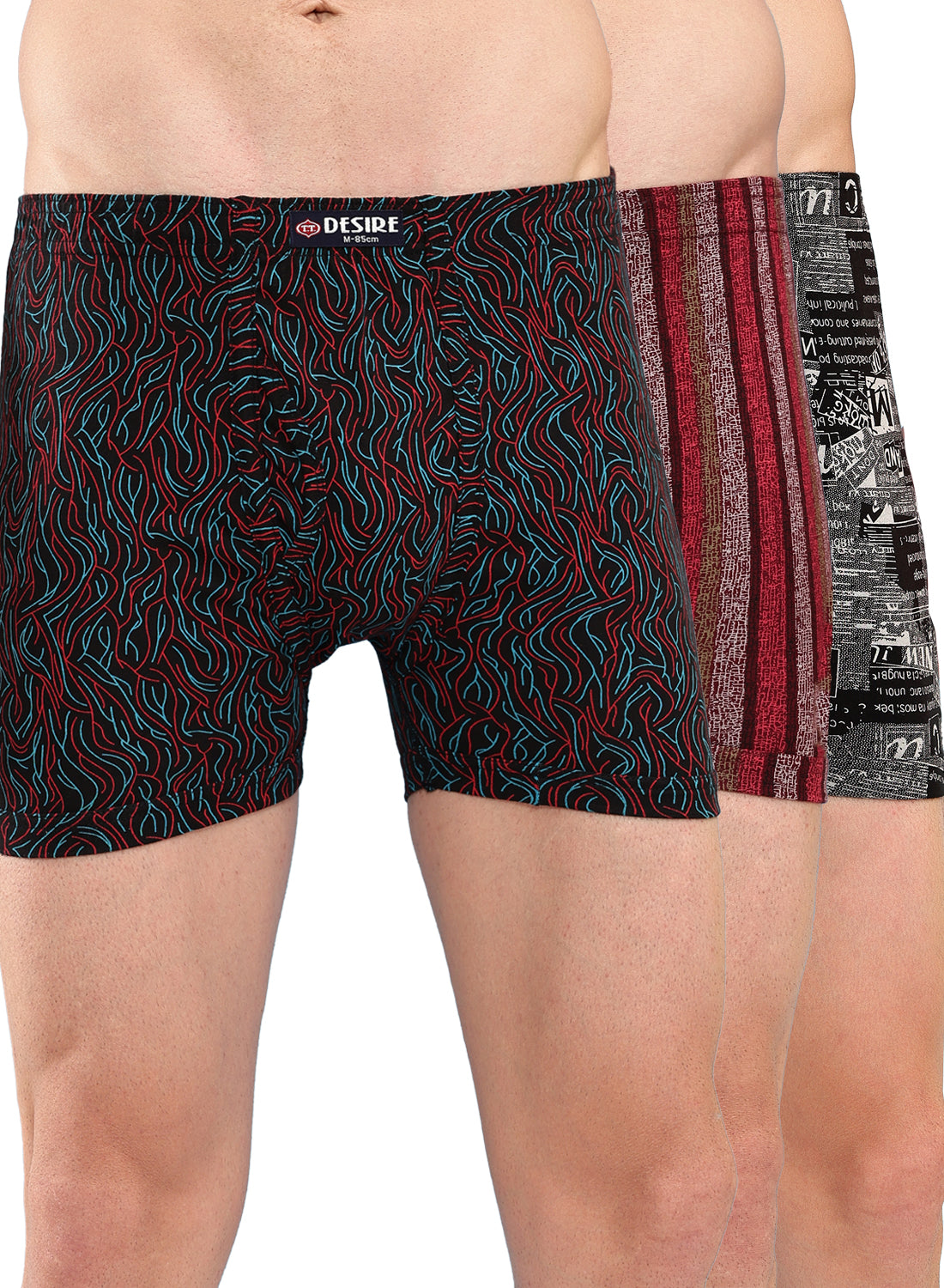 T.T. Men Desire Super Combed Cotton Printed Snug Fit Long Trunks For Men Pack Of 3 Black-Grey-Maroon