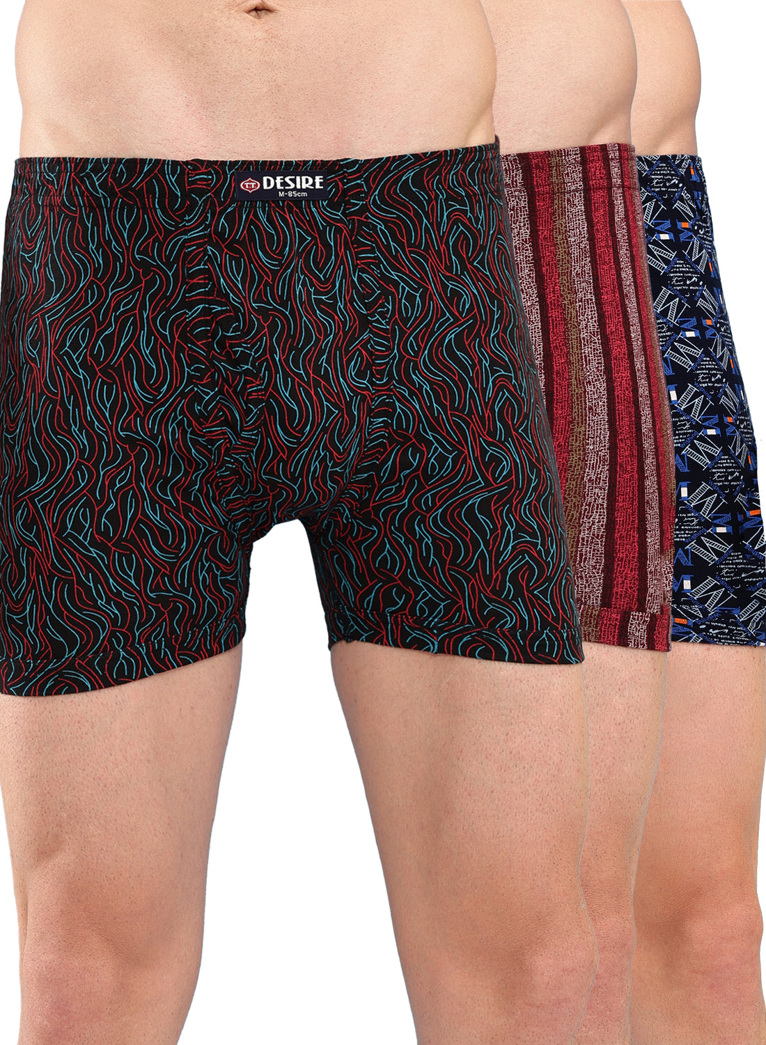 T.T. Men Desire Super Combed Cotton Printed Snug Fit Long Trunks For Men Pack Of 3 Black-Navy-Maroon