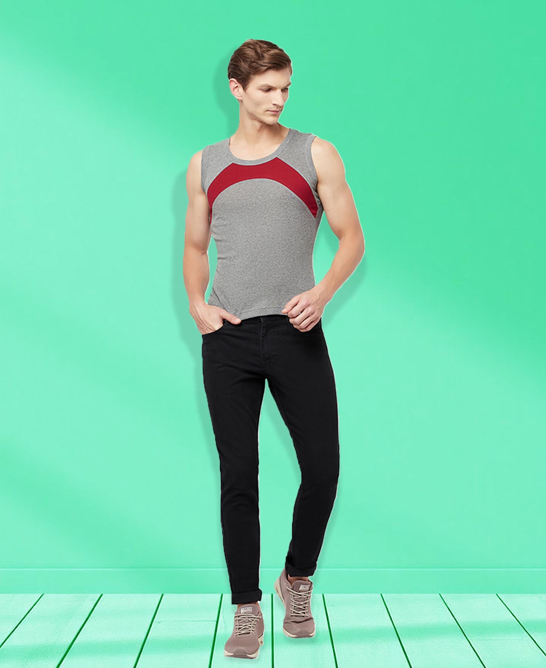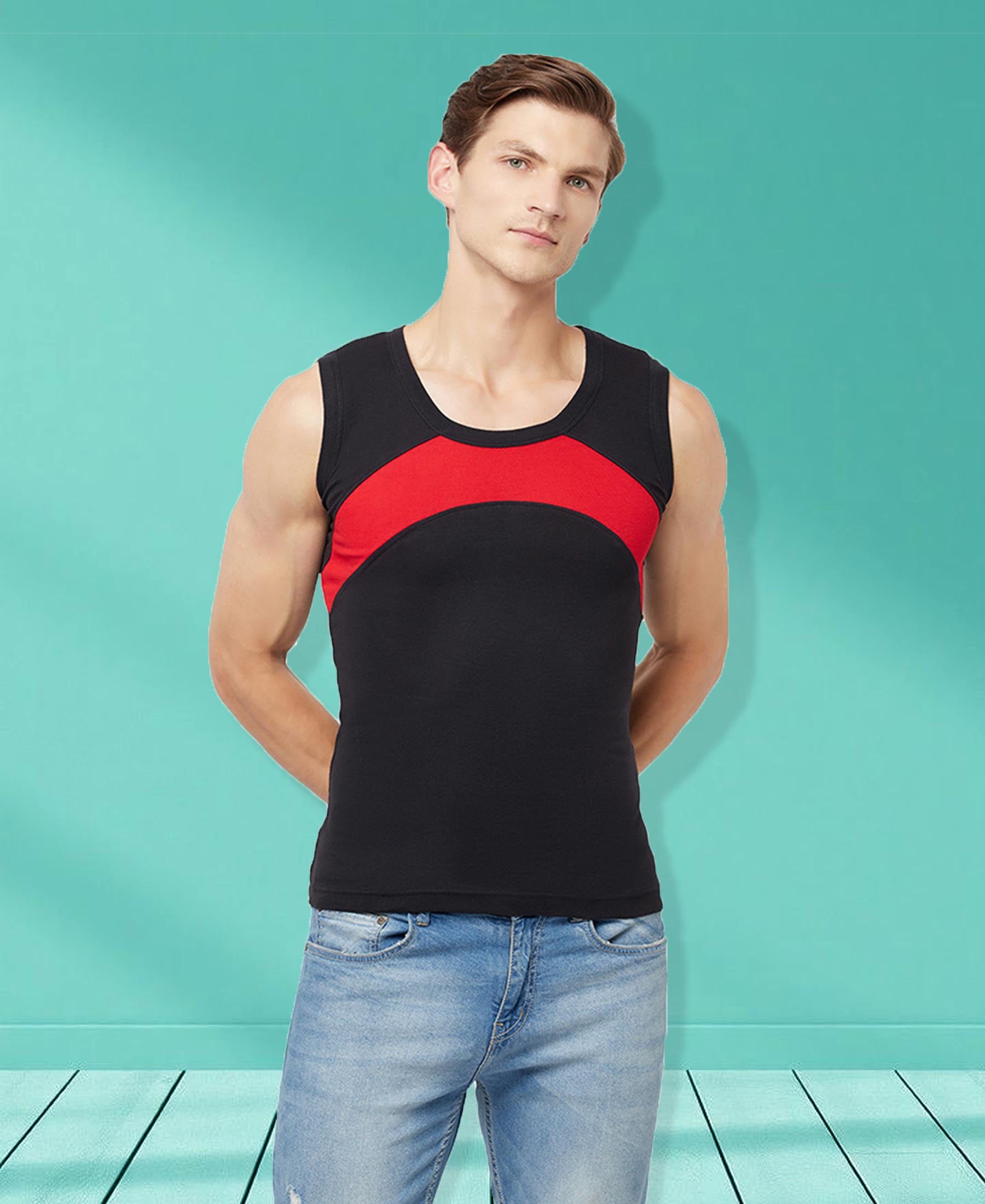 T.T. Men Designer Gym Vest Pack Of 2 Black-Red-Grey-Maroon