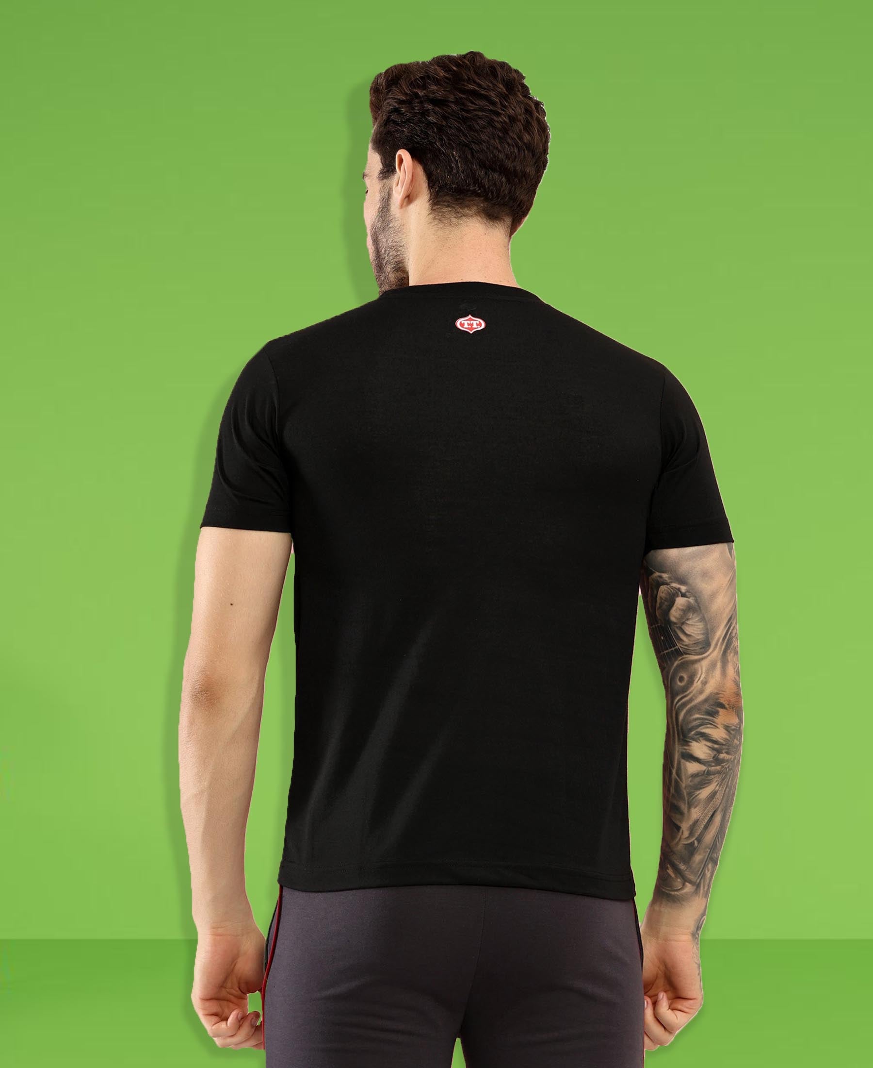 T.T. Men Slim Fit Poly Jersey Round Neck Half Sleeve T-Shirt Black
