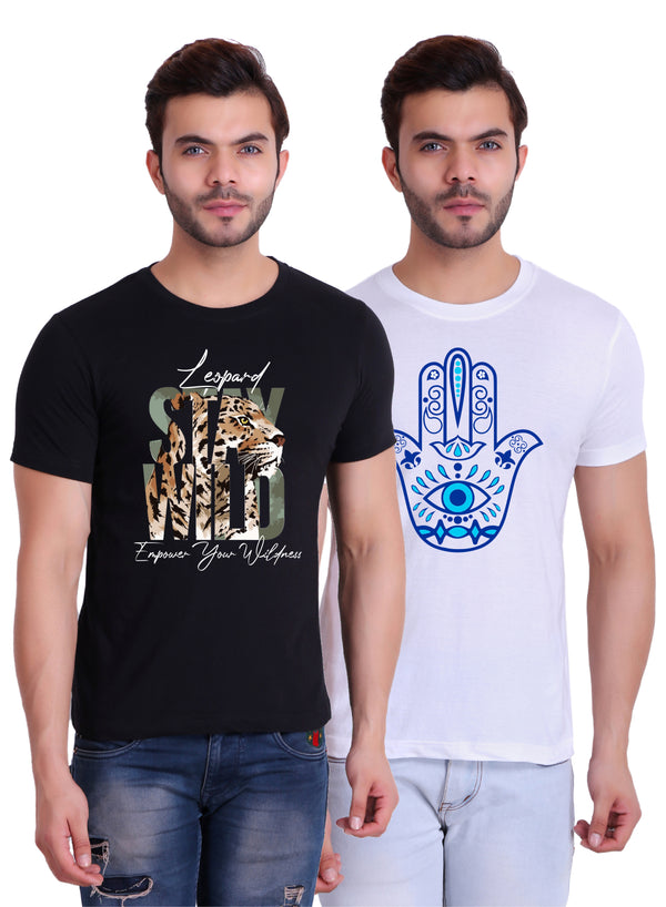 T.T. Men|Printed Tshirts For Men|Eco Friendly Recycled Fabric |Graphics Printed Tees|Round Neck|Half Sleeves|Cotton Blended Tees For Men|Regular Fit|Big Print|Pack Of 2|Black-White
