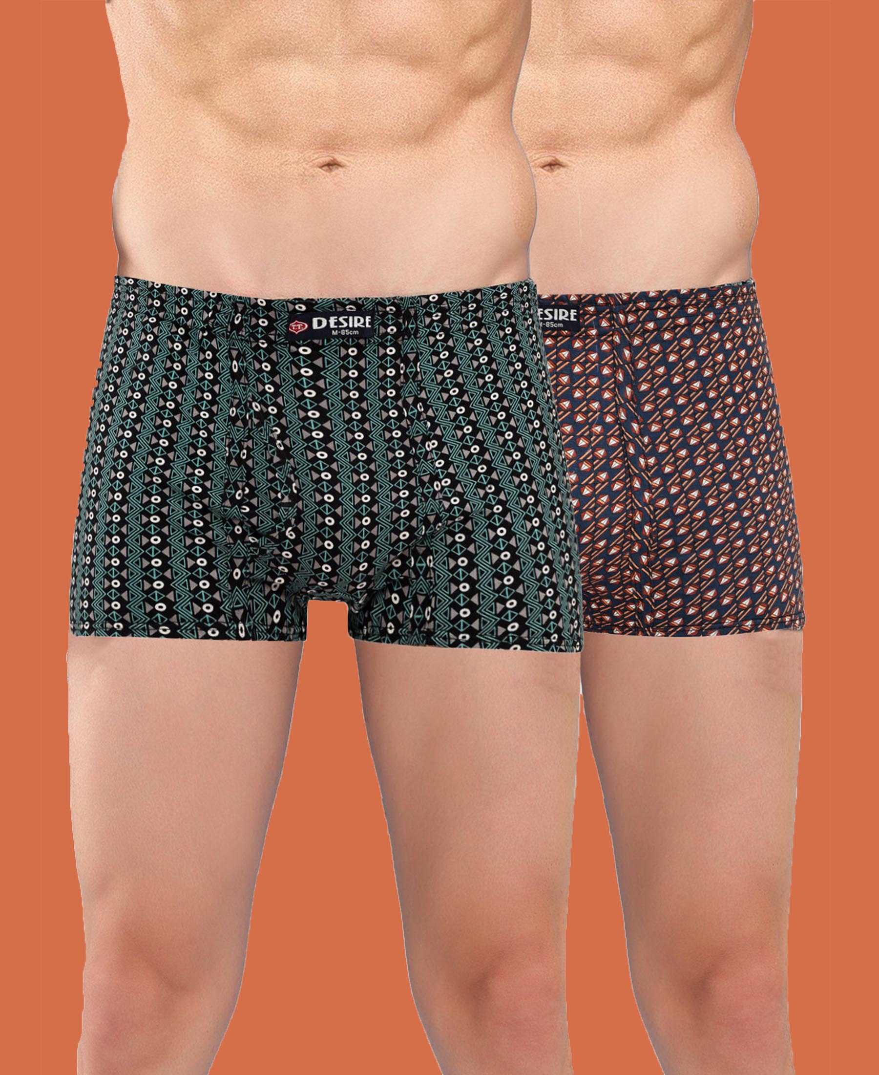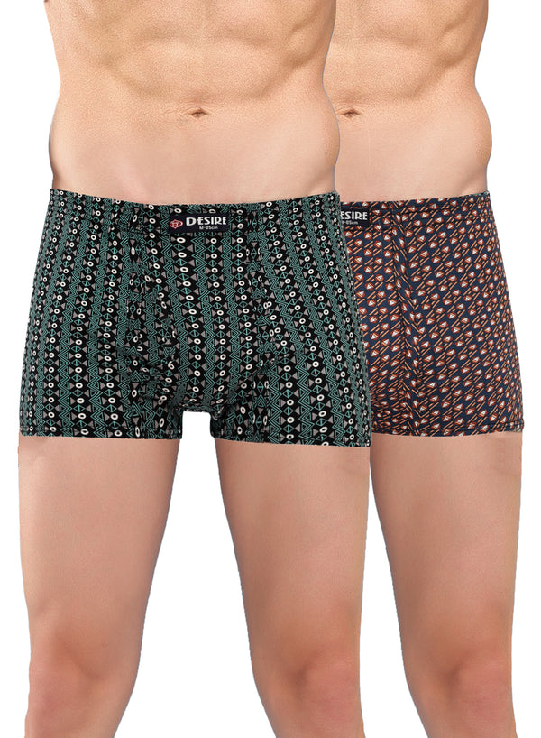 T.T. Men Desire Super Combed Cotton Printed Snug Fit Mini Trunks For Men Pack Of 2 Green-Brown