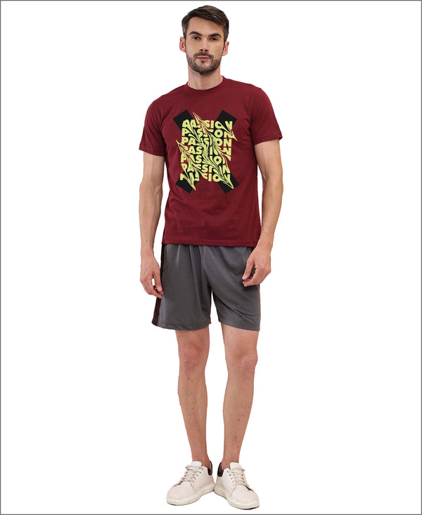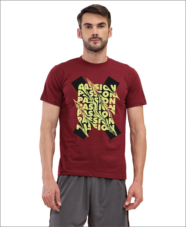 T.T. Men|Printed Tshirts For Men|Eco Friendly Recycled Fabric |Graphics Printed Tees|Round Neck|Half Sleeves|Cotton Blended Tees For Men|Regular Fit|Passion Print|Maroon