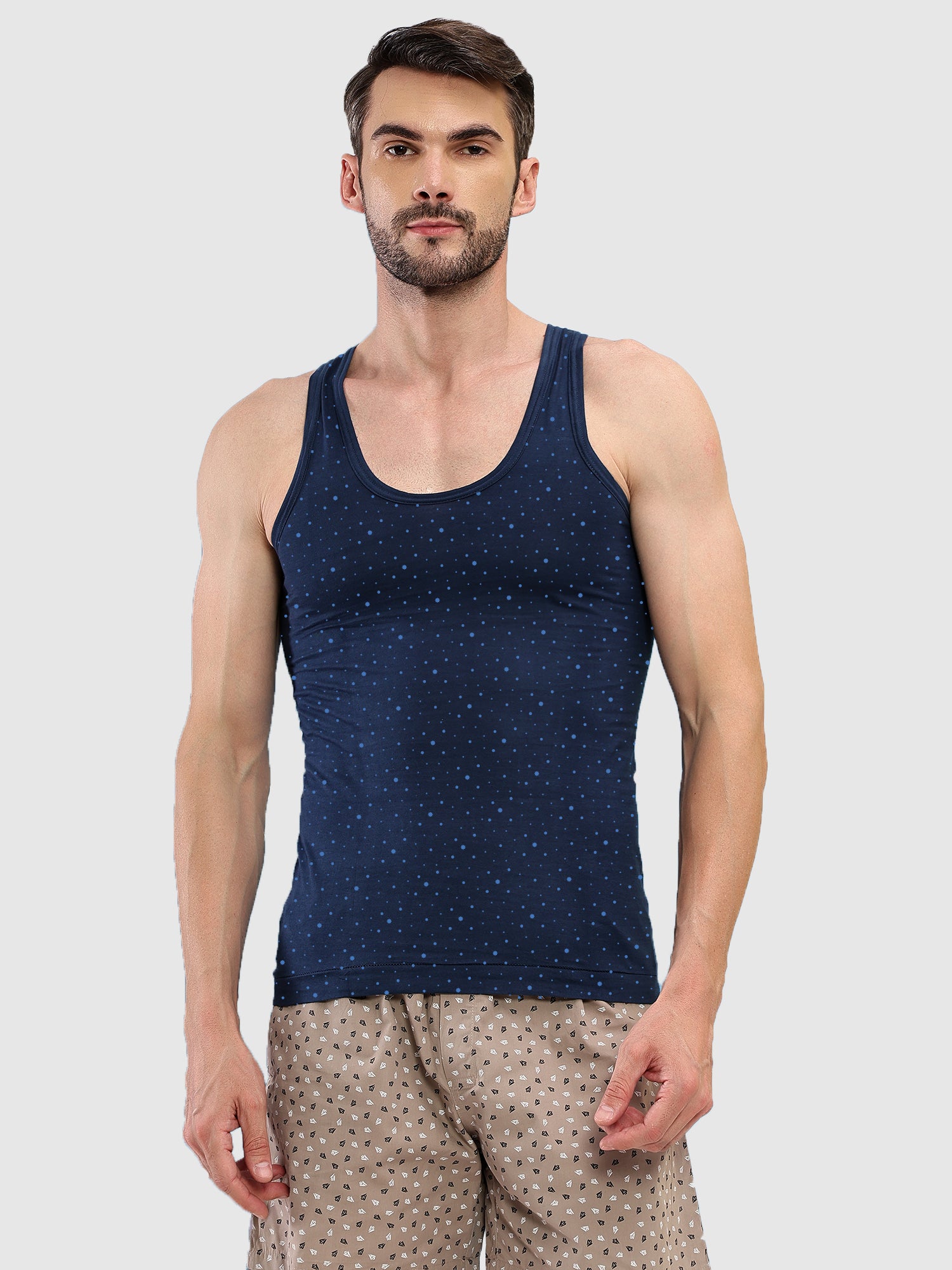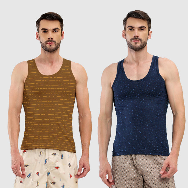 T.T. Men|Titanic Dyed Printed|Pure Cotton Printed Vest For Men|Printed Dyed Vest|Pack Of 2|Navy2::Brown