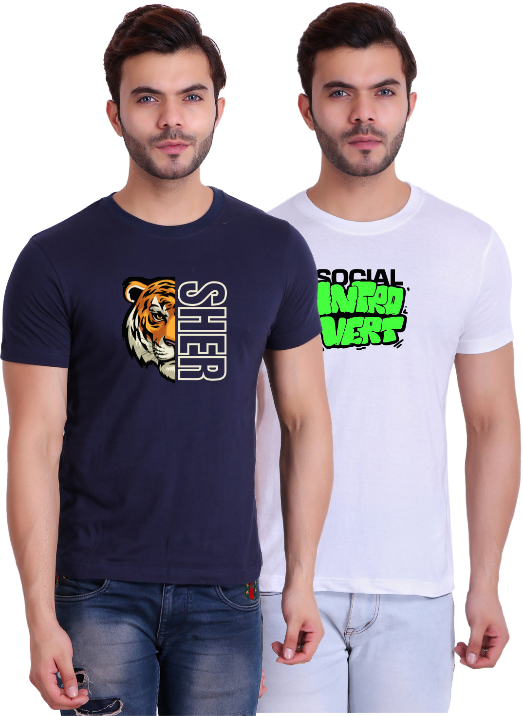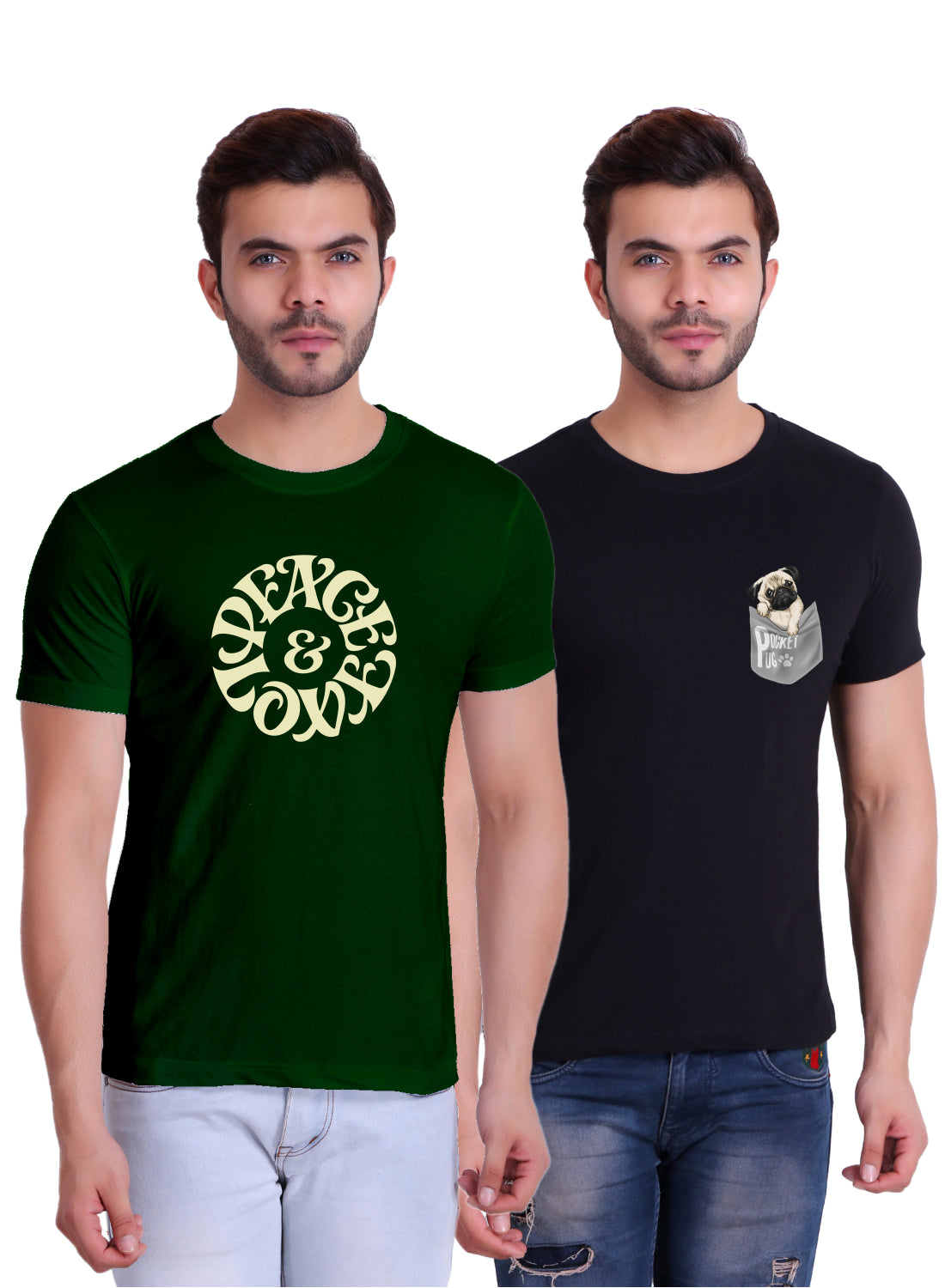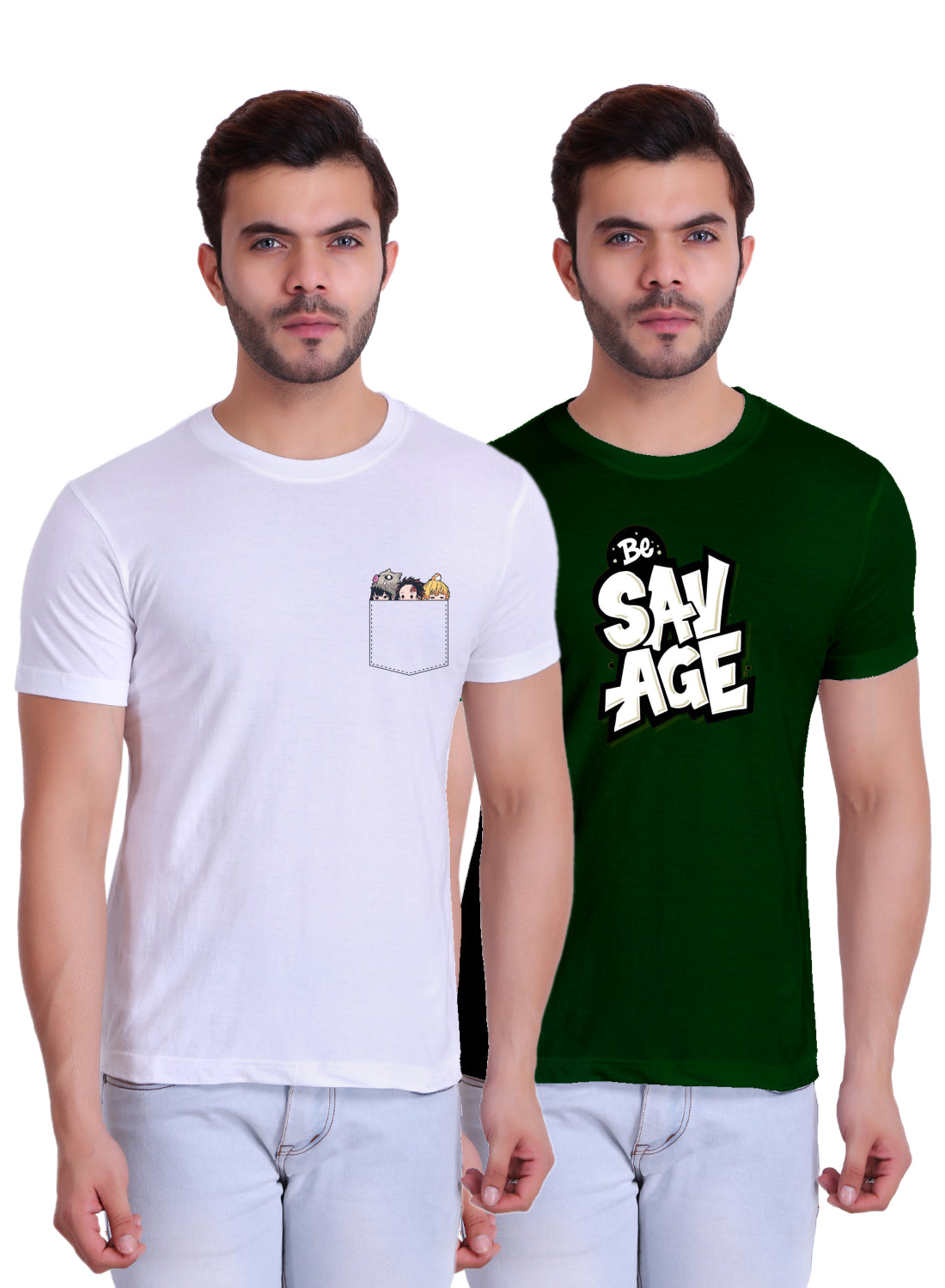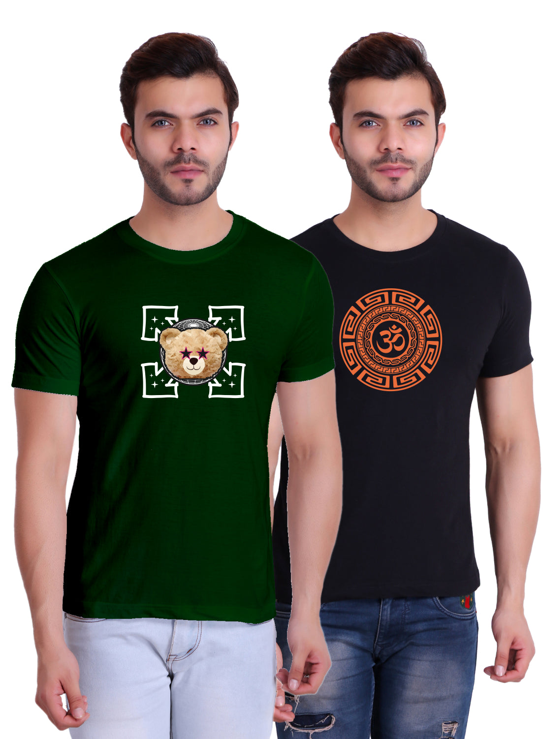 T.T. Men|Printed Tshirts For Men|Eco Friendly Recycled Fabric |Graphics Printed Tees|Round Neck|Half Sleeves|Cotton Blended Tees For Men|Regular Fit|Small Print|Pack Of 2|Olive-Navy