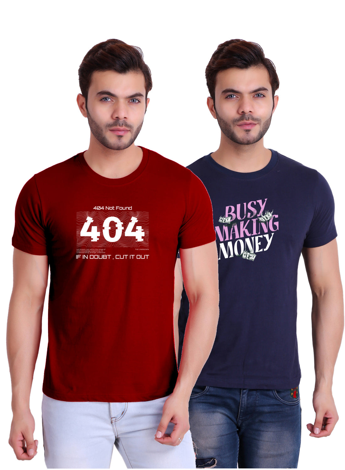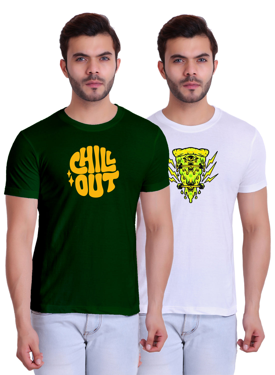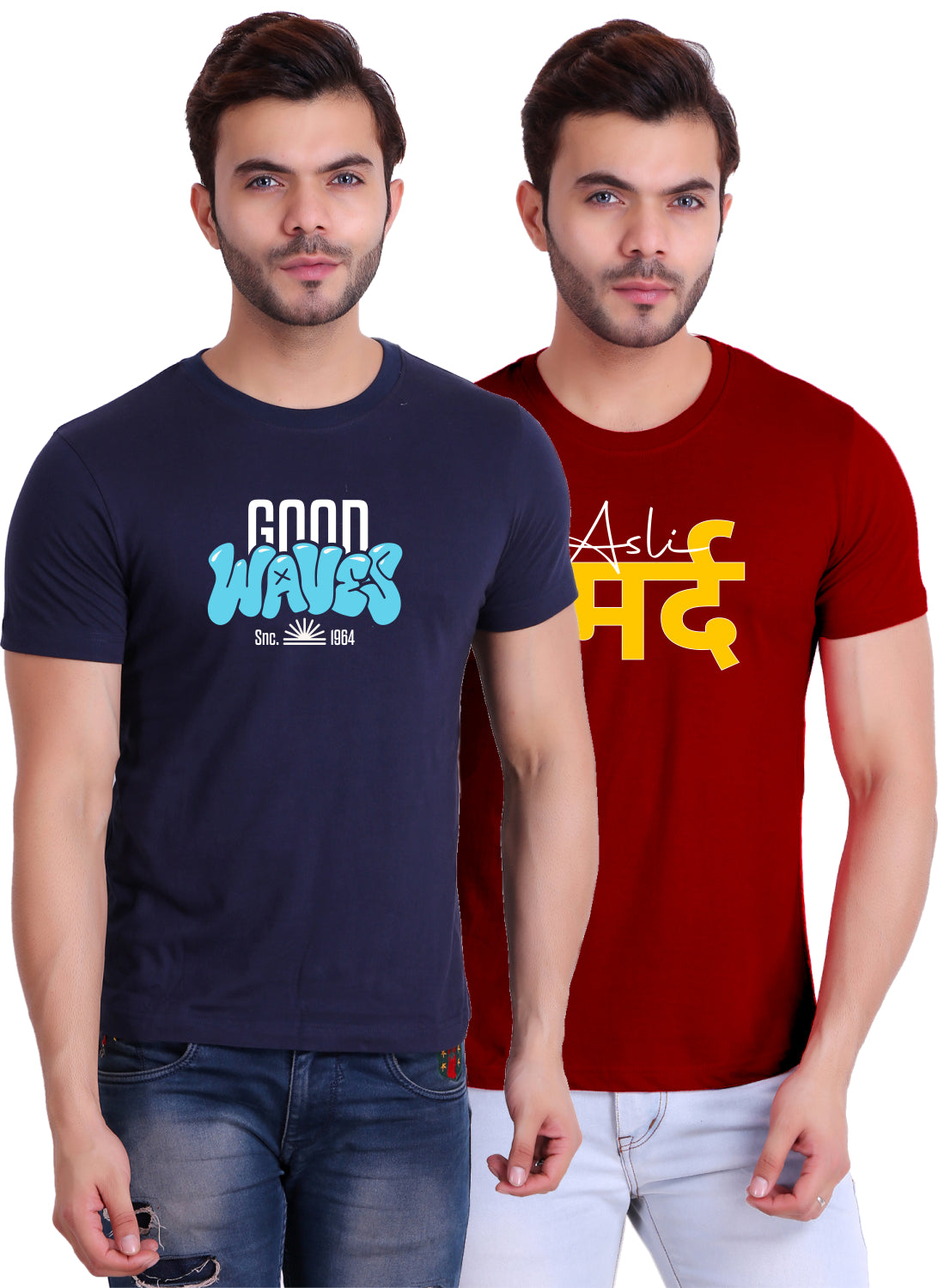 T.T. Men|Printed Tshirts For Men|Eco Friendly Recycled Fabric |Graphics Printed Tees|Round Neck|Half Sleeves|Cotton Blended Tees For Men|Regular Fit|Small Print|Pack Of 2|Olive-Navy