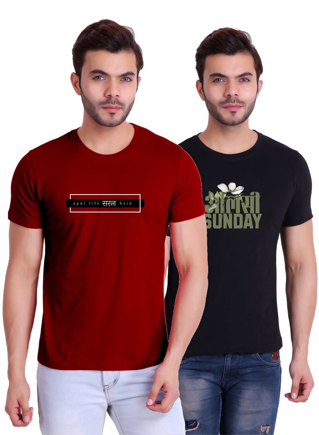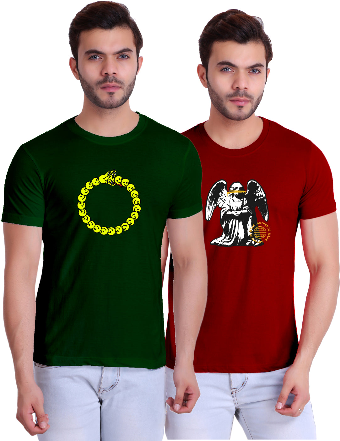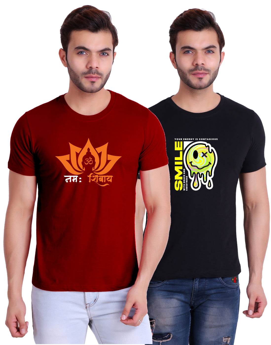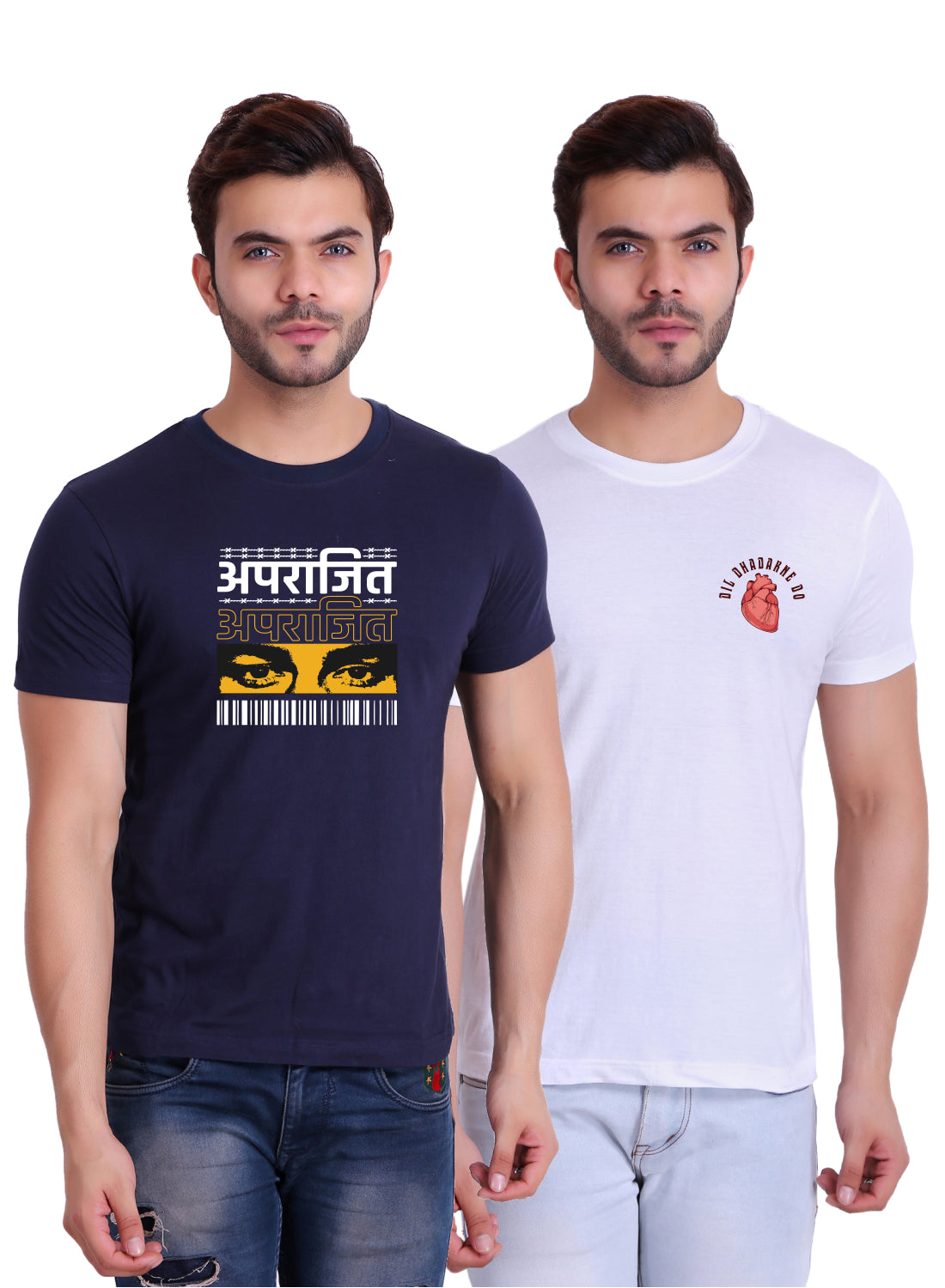 T.T. Men|Printed Tshirts For Men|Eco Friendly Recycled Fabric |Graphics Printed Tees|Round Neck|Half Sleeves|Cotton Blended Tees For Men|Regular Fit|Small Print|Pack Of 2|Olive-Navy