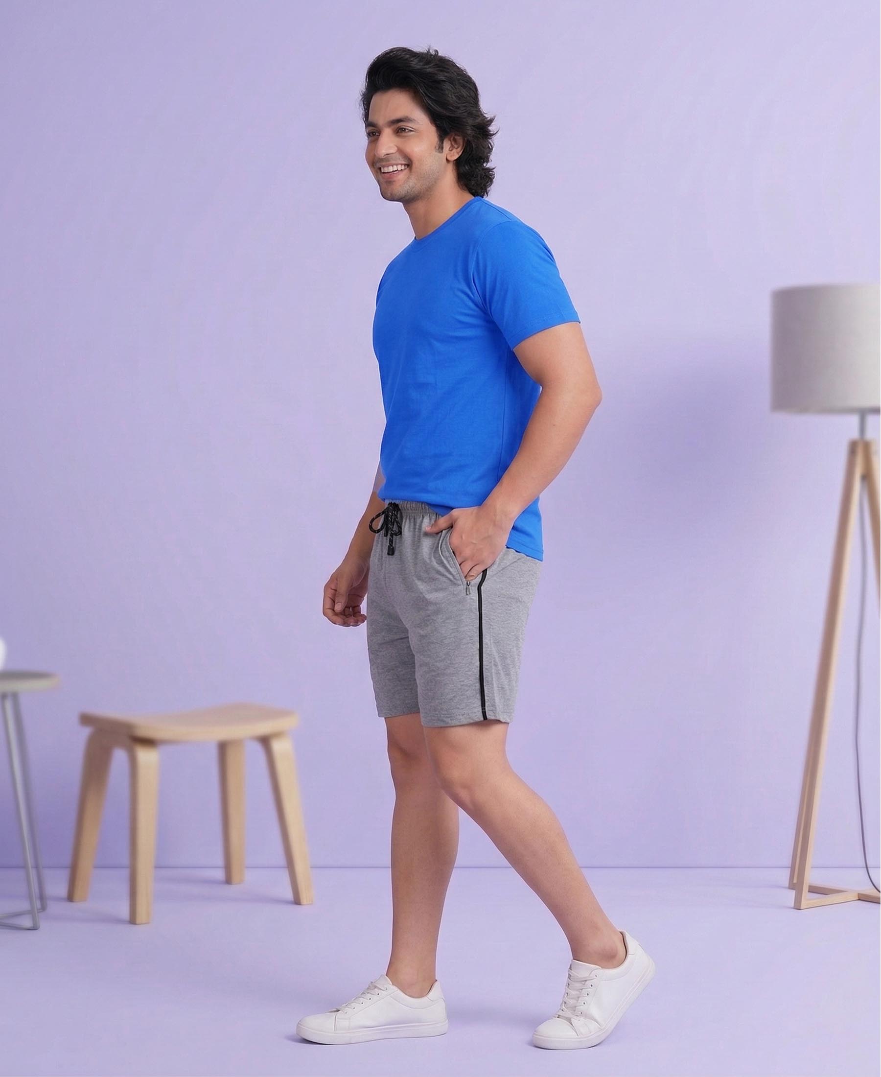 T.T. Men’s Cotton Blend | Solid Round Neck T-Shirt & Regular Fit Shorts | Casual Co-ord Set for Men
