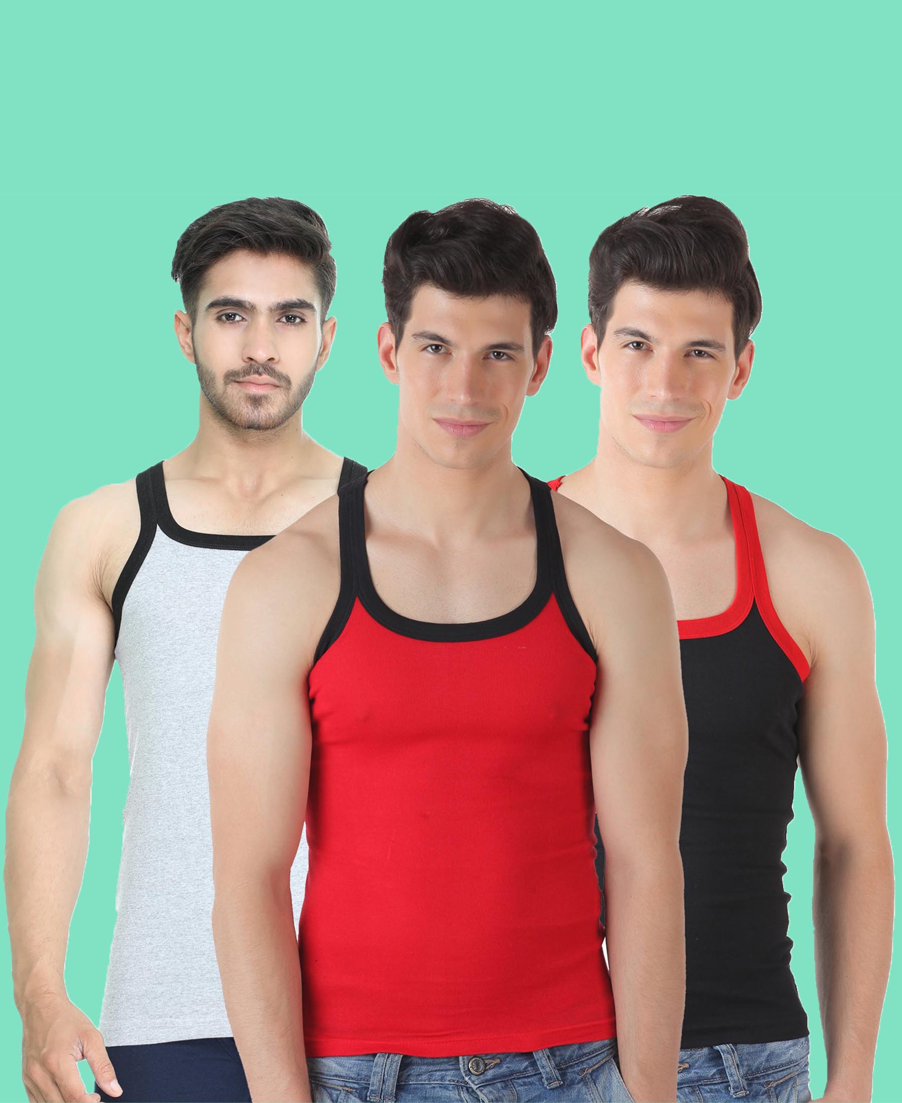 T.T. Men Solid Pack Of 3 Gym Vest Black-Red-Olive