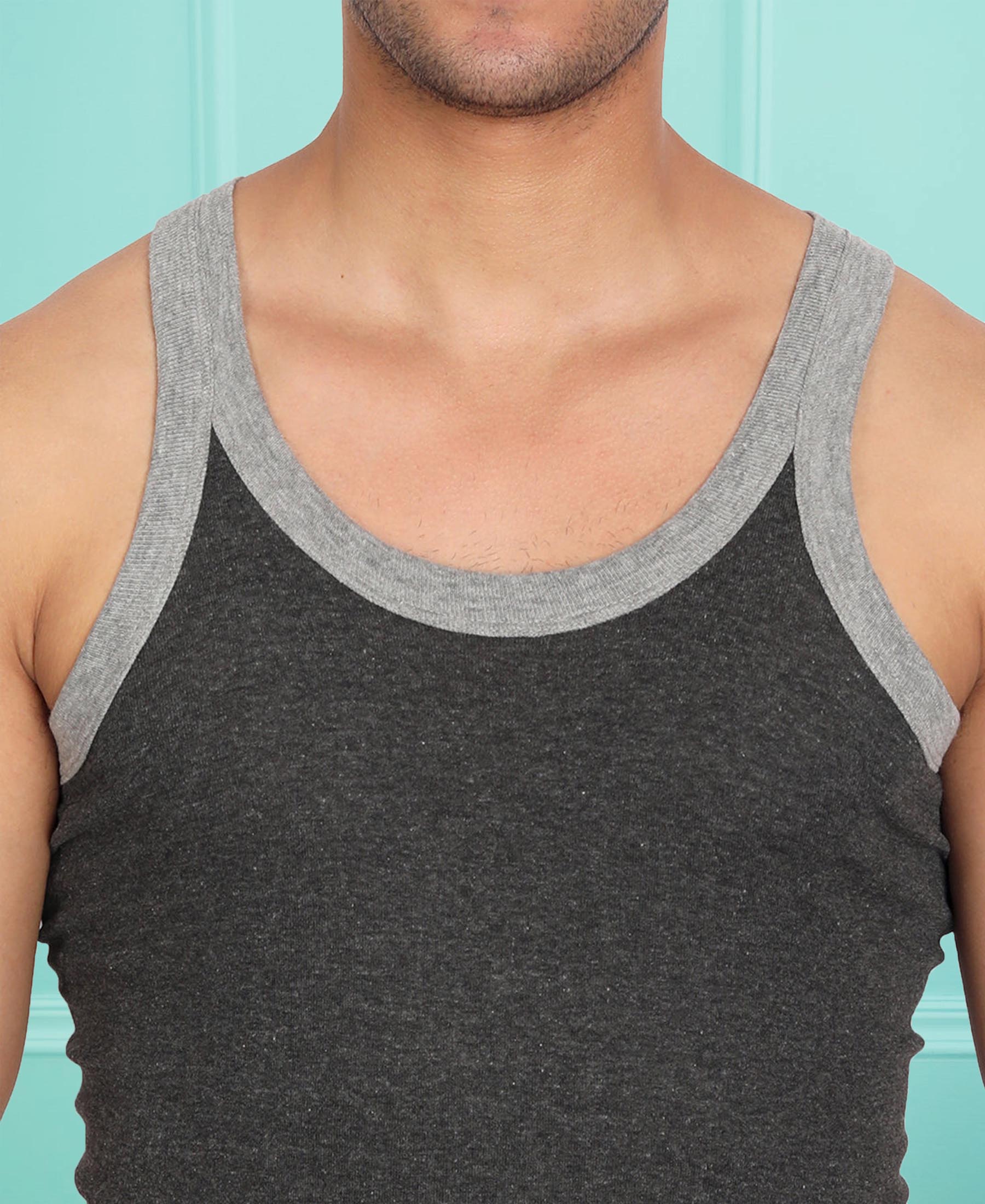 T.T. Men Titanic Charcoal Grey Pure Cotton Gym Vest