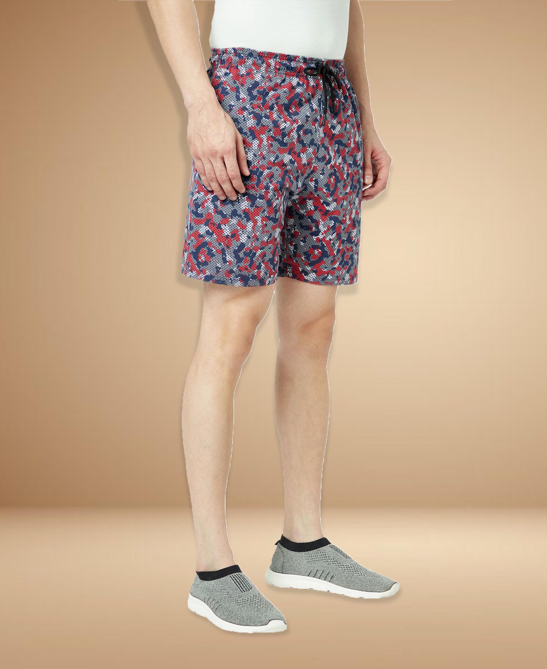 T.T. Mens Cotton Regular Fit Printed Bermuda Shorts With Zipper Grey Red