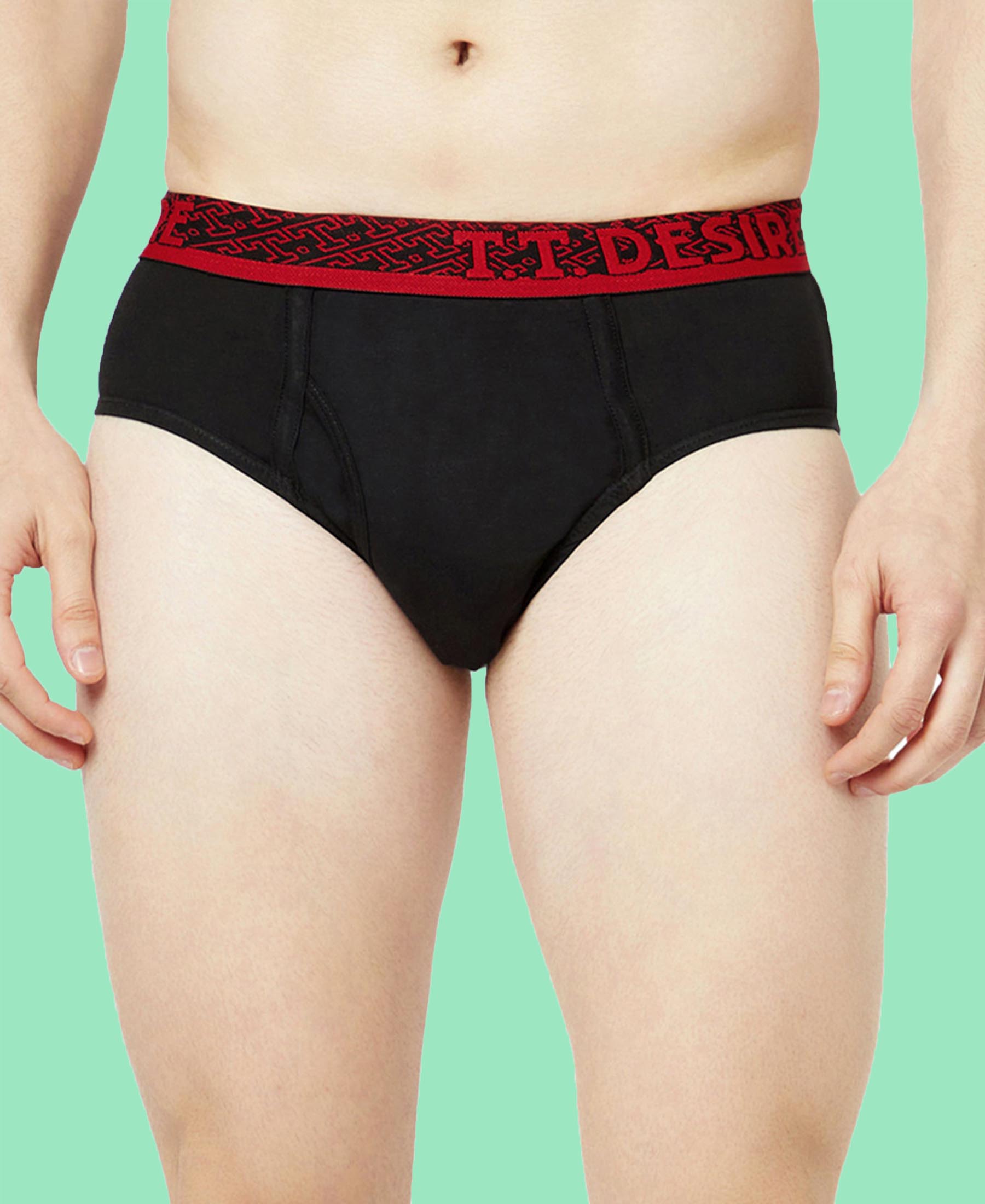 T.T. Mens Desire 100% Combed Cotton Front Open Brief Top Elastic Pack Of 2 Black-Dark Brown