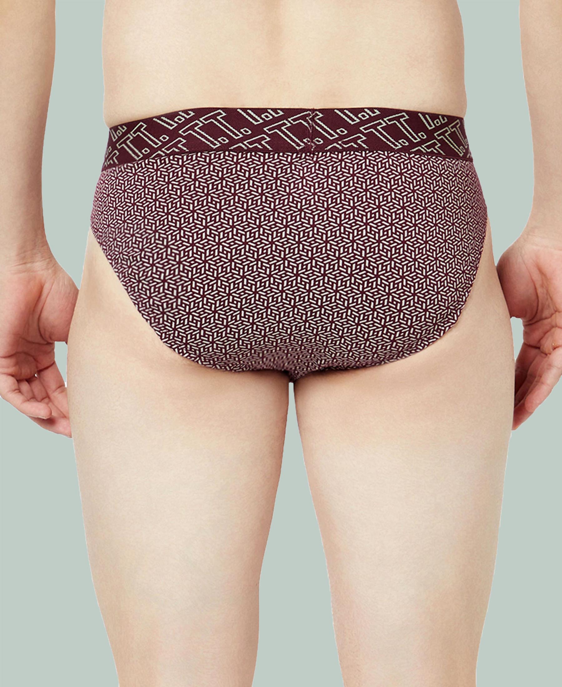 T.T. Mens Desire 100% Combed Cotton Printed Brief Top Elastic Pack Of 3 Majenta-Blue-Maroon