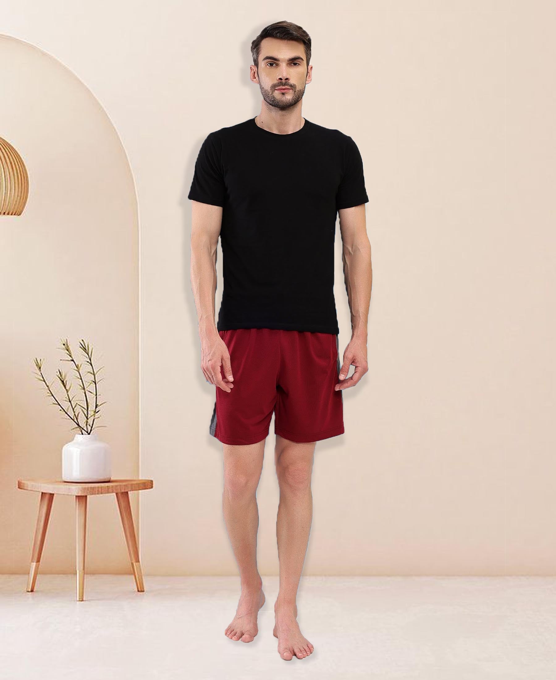 T.T. Men'S Poly Jersey Cut & Sew Short -Maroon