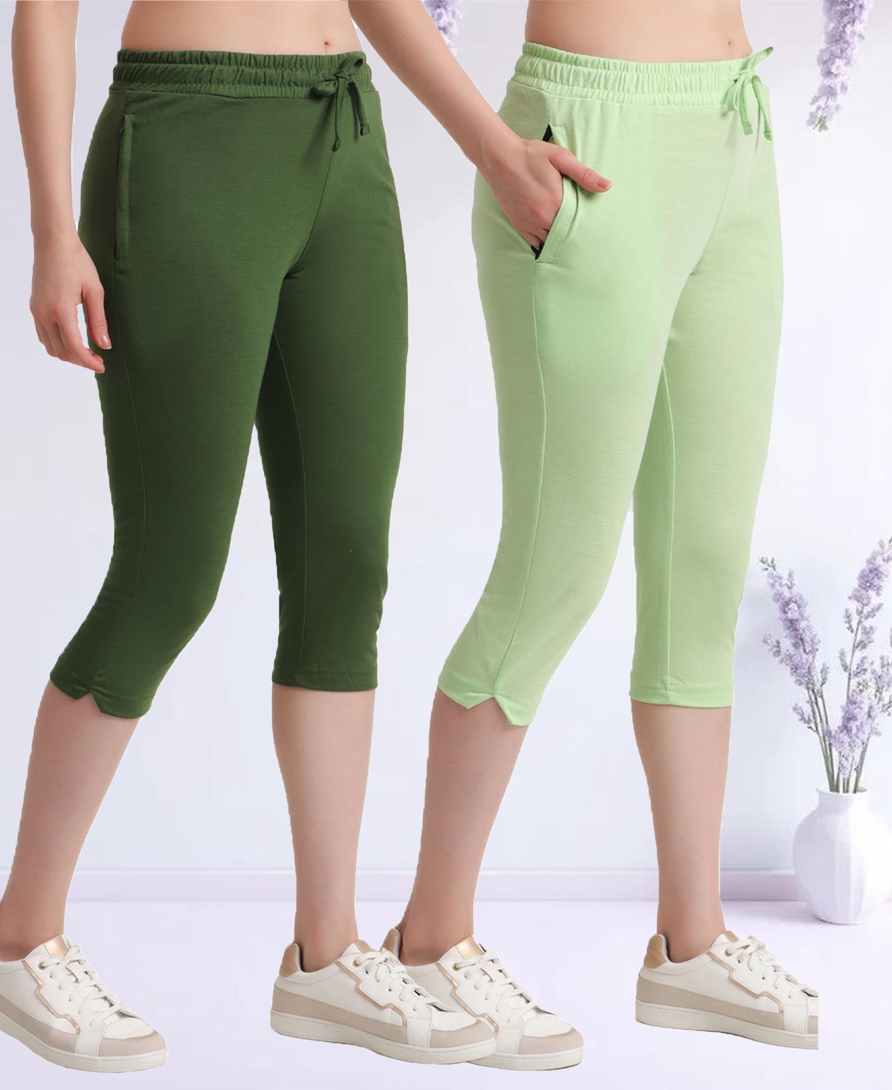 T.T. Women Regular Fit Poly Jersey Solid Capri Pack Of 2-Black-Olive