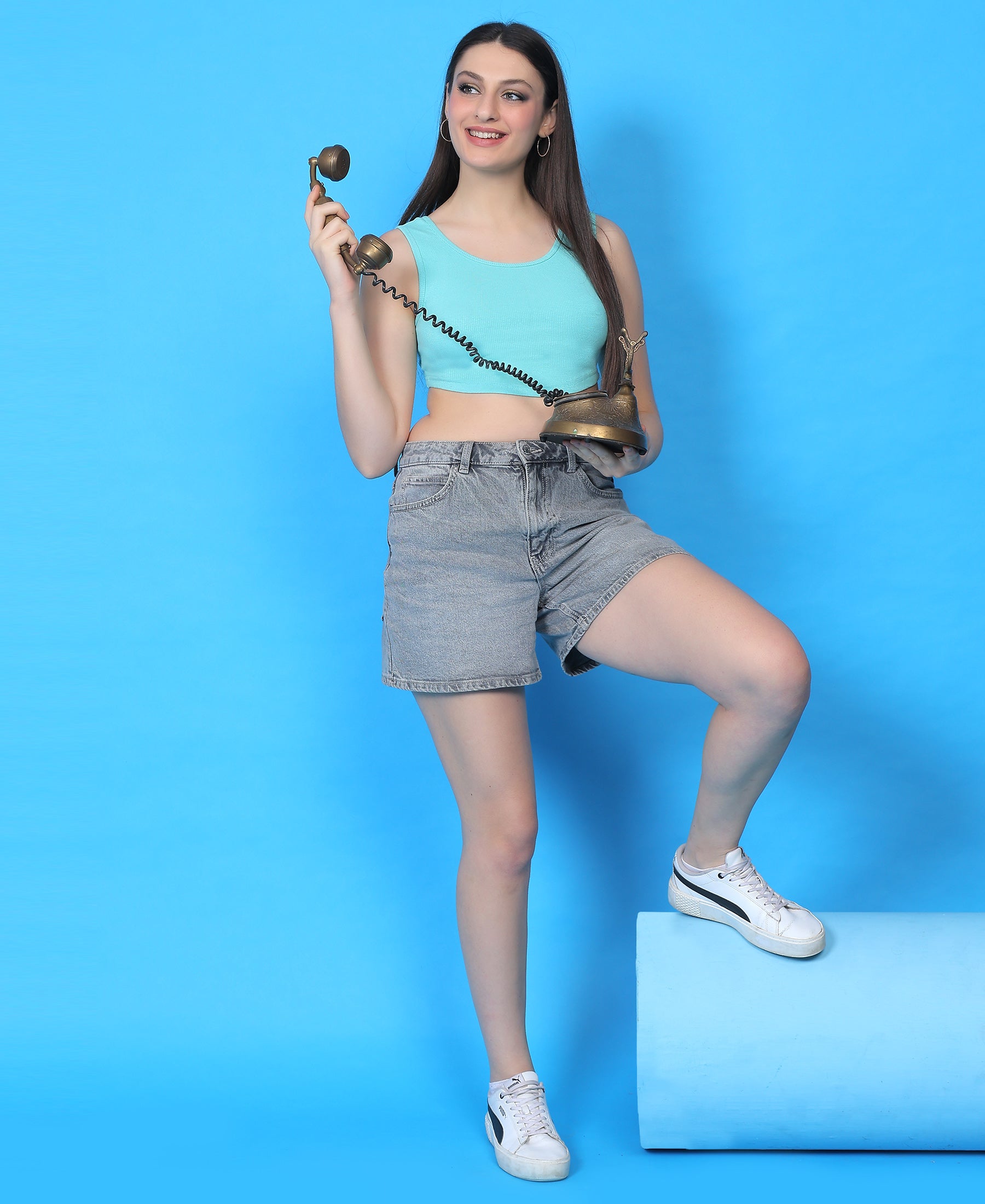 T.T. Women|Ribbed Crop Top|Sleeveless Round Neck Slim Fit Aesthetic Streetwear Top|Stretchable Cotton Fabric|Tshirt|Top||Mint