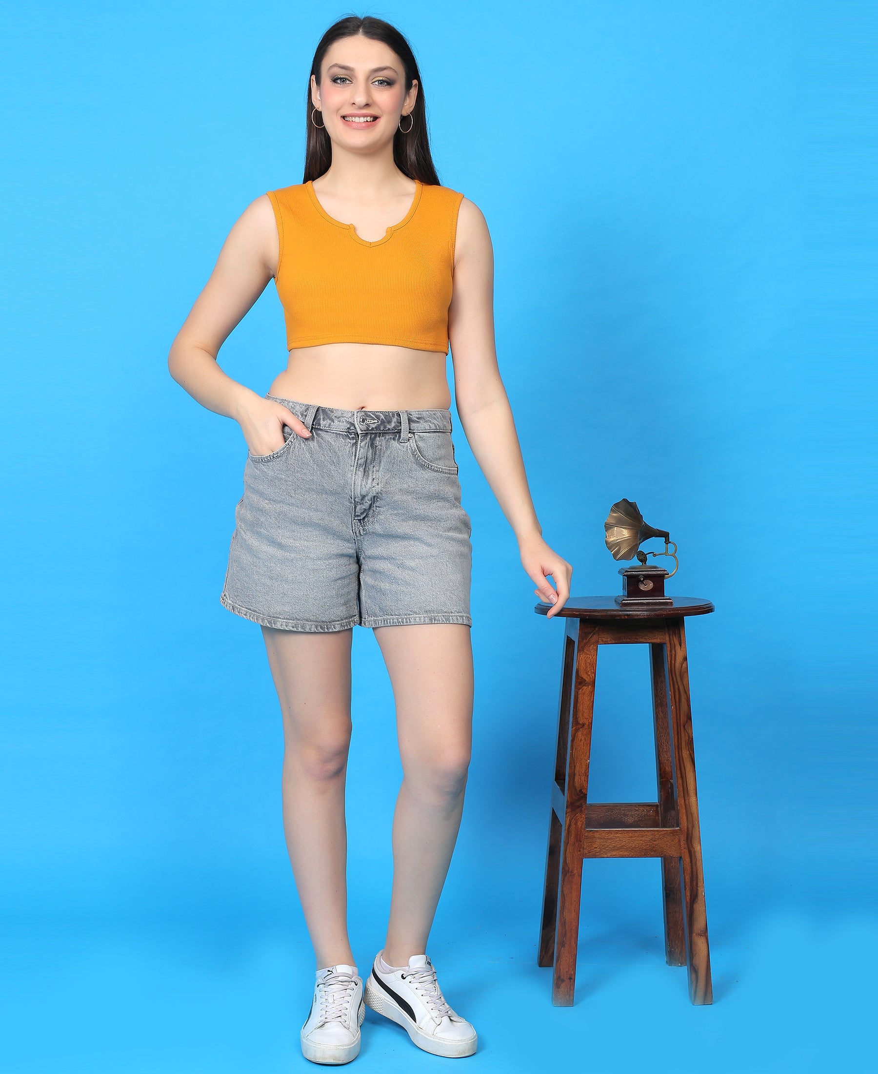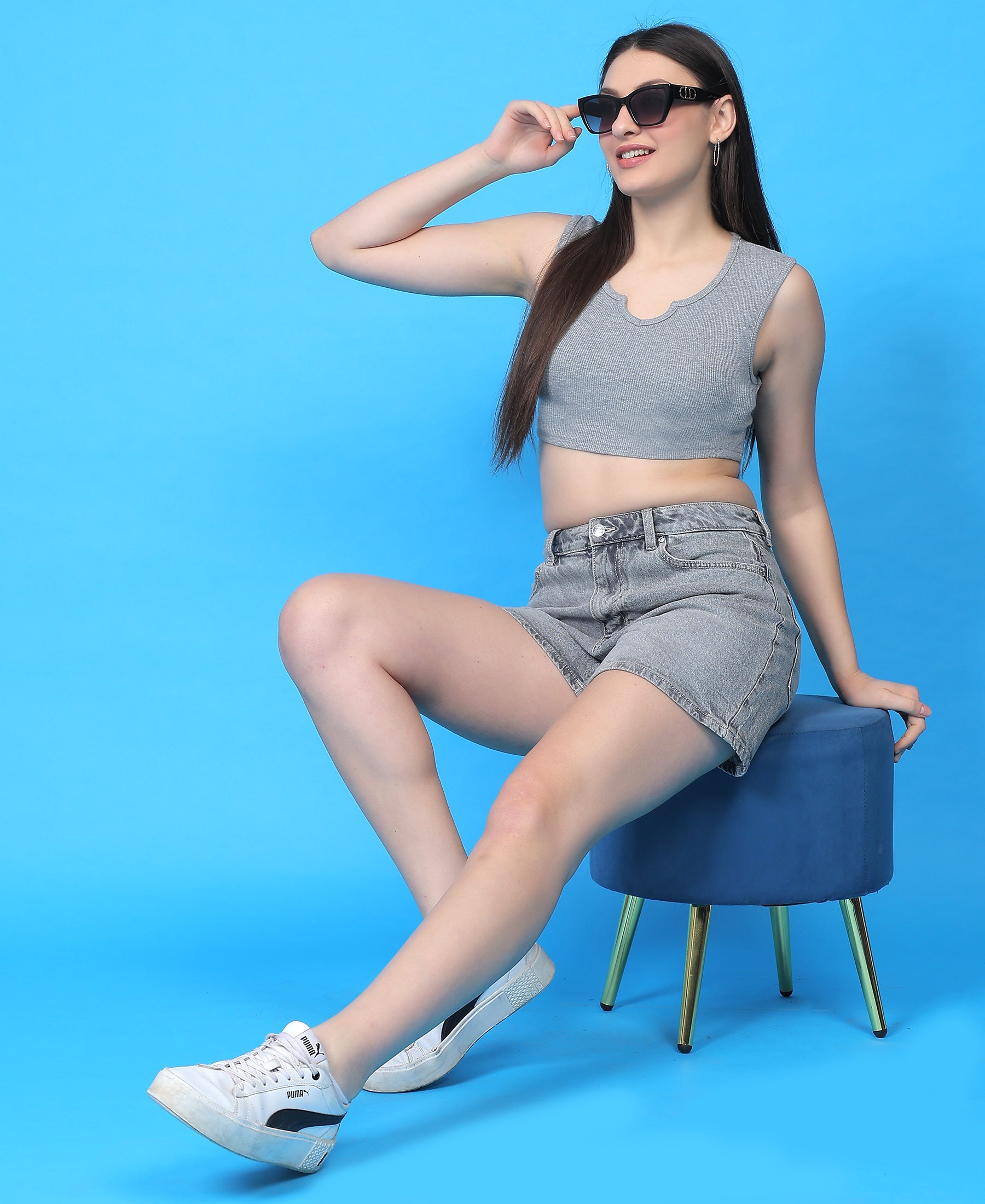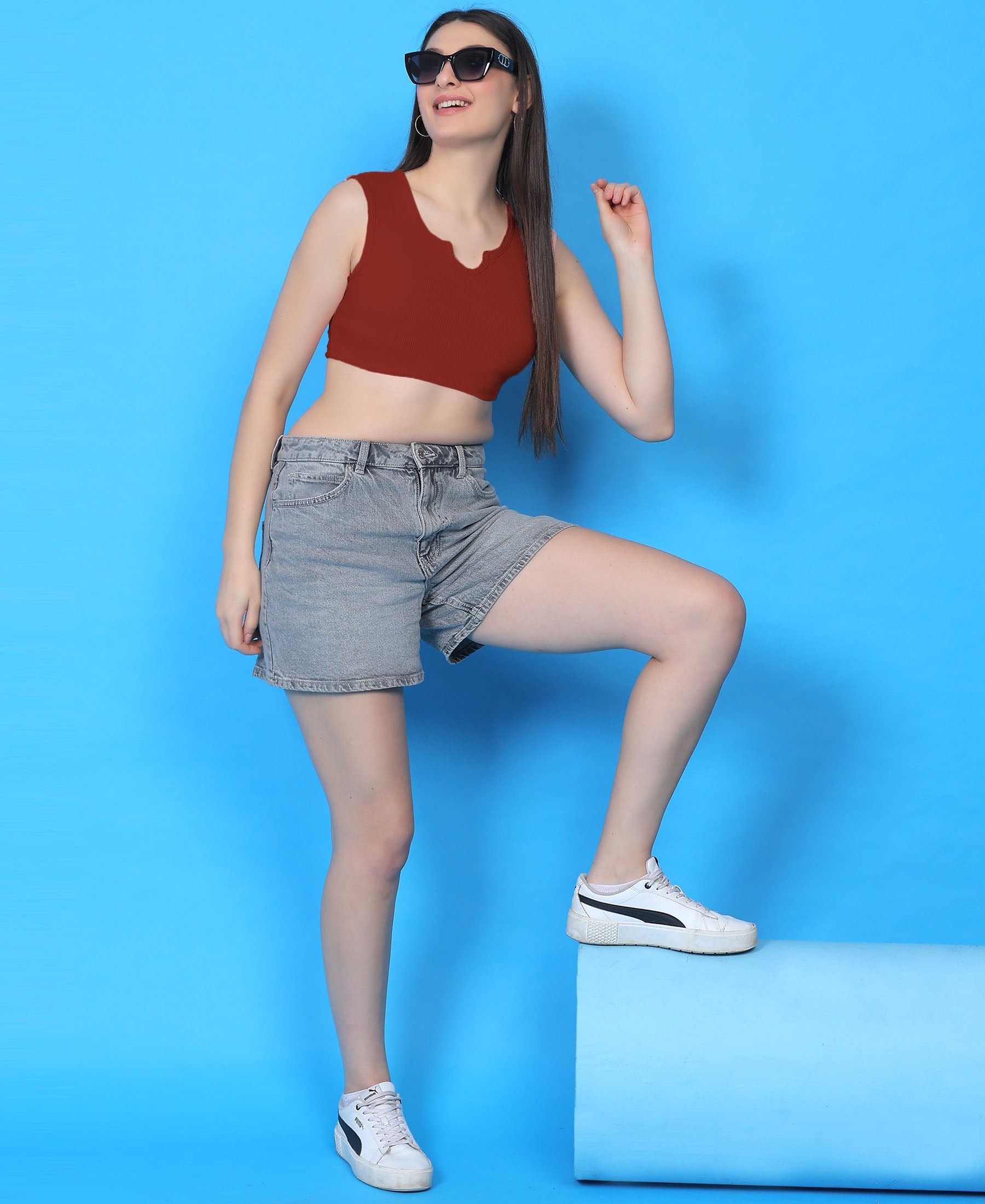 Turn heads with this Ribbed crop top for women designed for bold, confident style. With its sleeveless design and trendy notch neckline, this top delivers the perfect mix of comfort and Gen Z fashion.