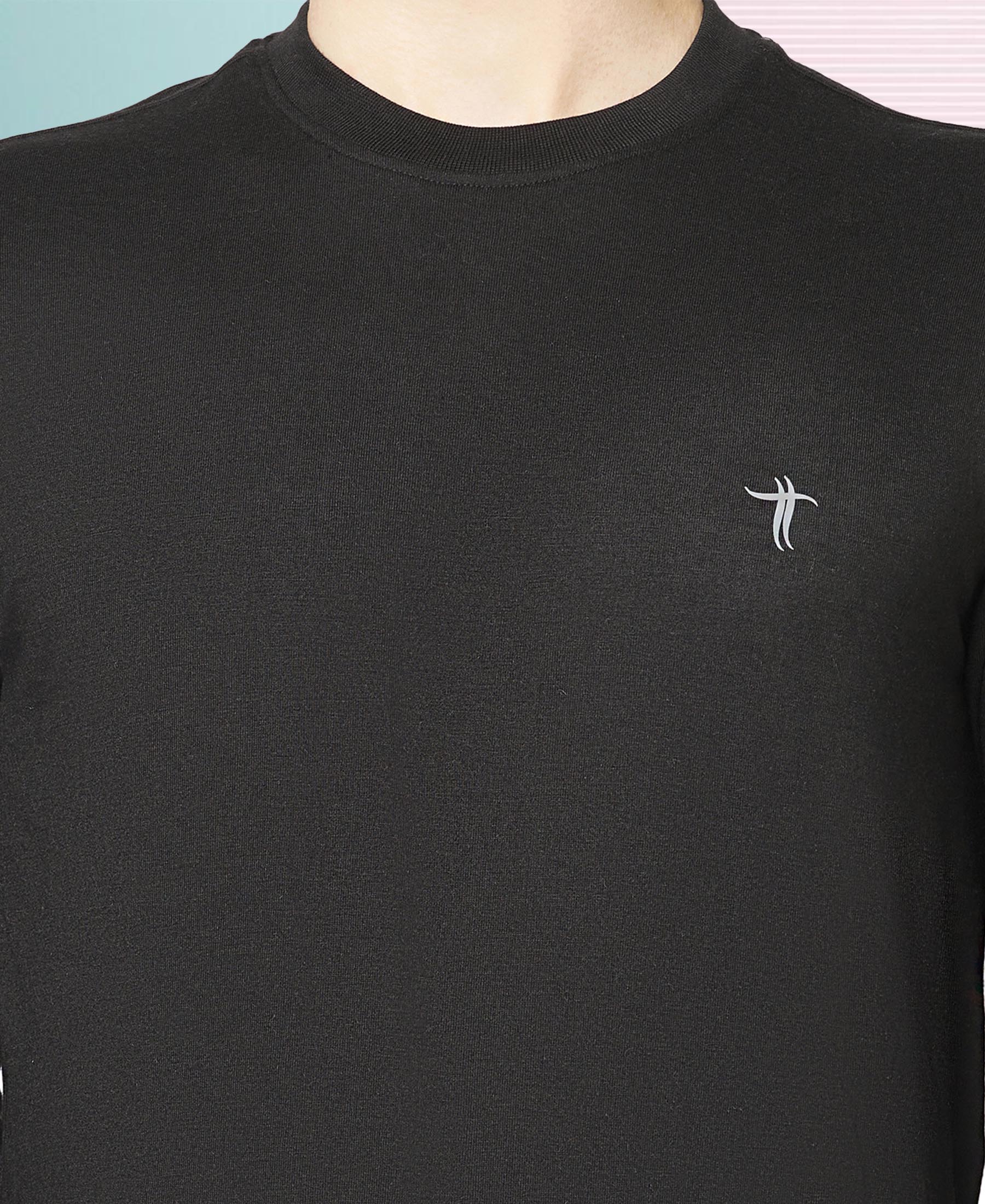 T.T. Men Black Cotton Polyster Regular Fit Solid Sweatshirt Style Tshirt