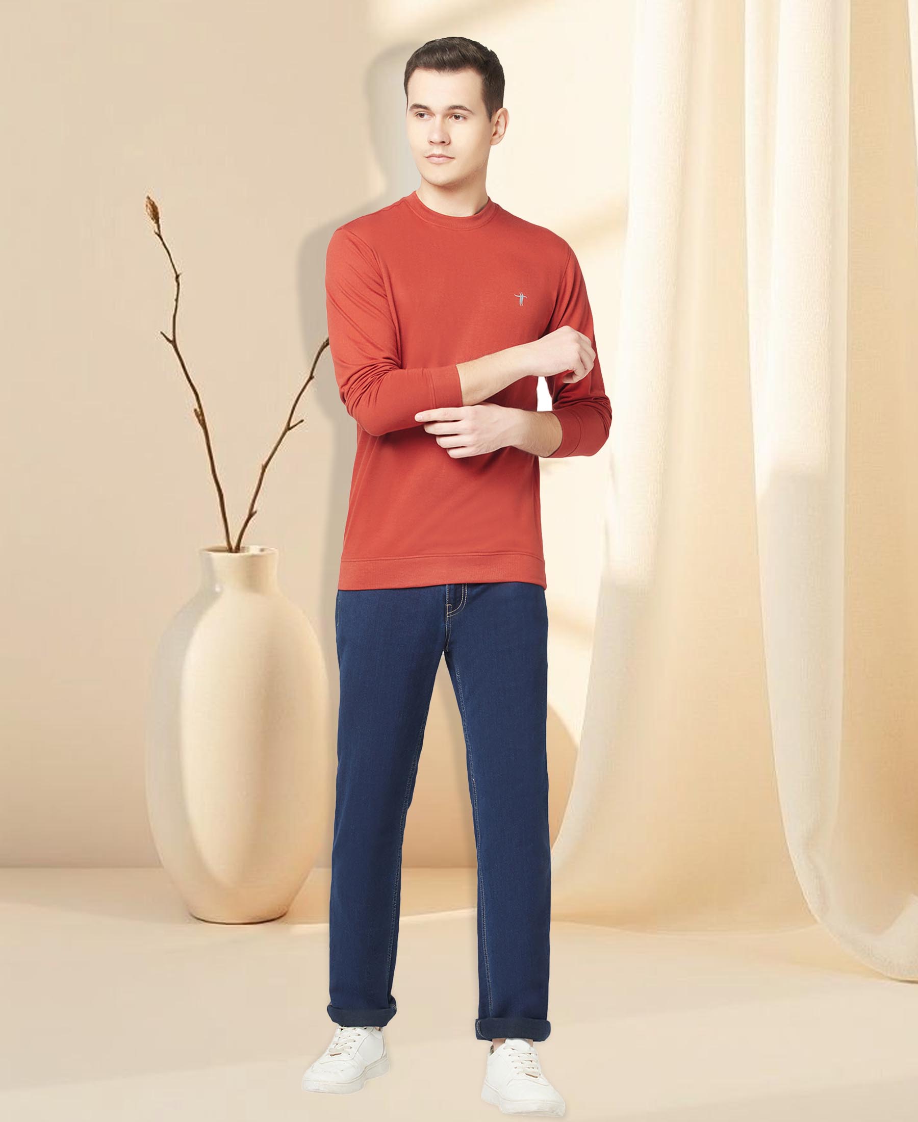 T.T. Men Cotton Polyster Regular Fit Solid Full Sleeve T-Shirt Pack Of 2 (Black-Orange )