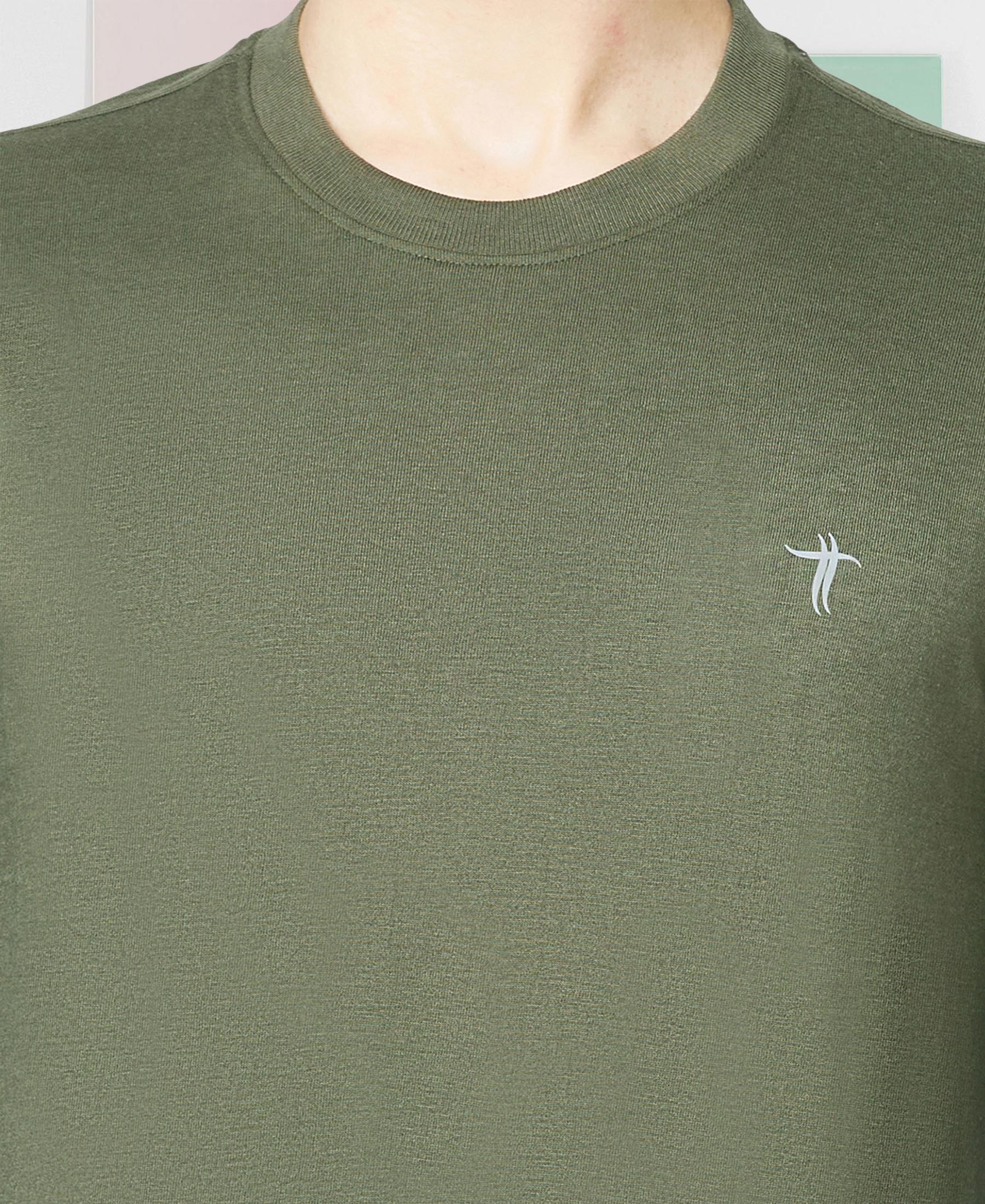 T.T. Men Olive Cotton Polyster Regular Fit Solid Sweatshirt Style Tshirt